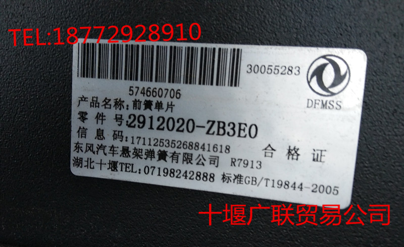 2912040-ZB3E0東風汽車懸架彈簧前簧單片第七片帶卡箍總成 2912040-ZB3E0