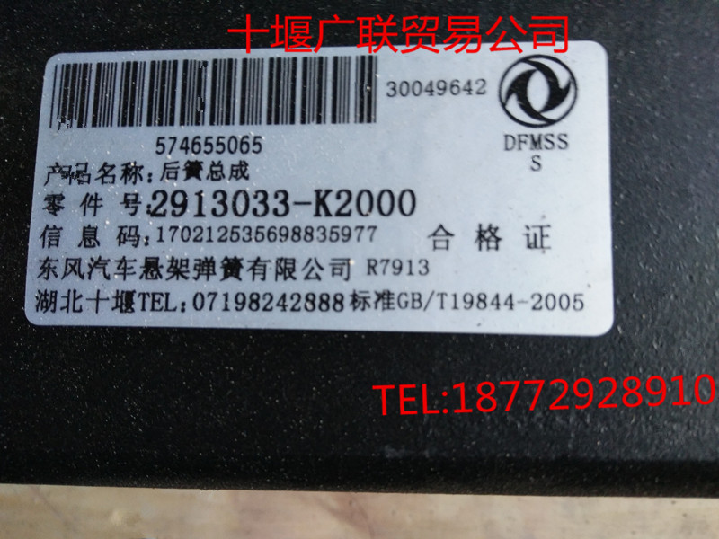 【2913033-K2000】東風(fēng)汽車懸架彈簧鋼板后簧總成 2913033-K2000