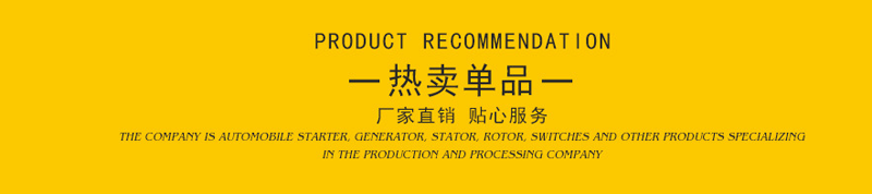 工廠直銷 : 我們可以按你的要求定制,價(jià)格、質(zhì)量、售后服務(wù)有保障! 核心產(chǎn)品 : 起動(dòng)機(jī)、發(fā)電機(jī)、轉(zhuǎn)子、繼電器、傳感器、開關(guān)等。 產(chǎn)品領(lǐng)域:卡車、客車、農(nóng)用車、工程機(jī)械、農(nóng)業(yè)機(jī)械、礦山機(jī)械、微型車、轎車(進(jìn)口 國產(chǎn))、農(nóng)用車、皮卡。
