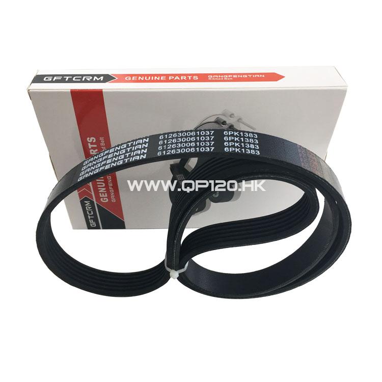 陜汽裝載機(jī)濰柴發(fā)動機(jī)風(fēng)扇發(fā)電機(jī)空調(diào)皮帶多楔帶 6PK1383 612630061037