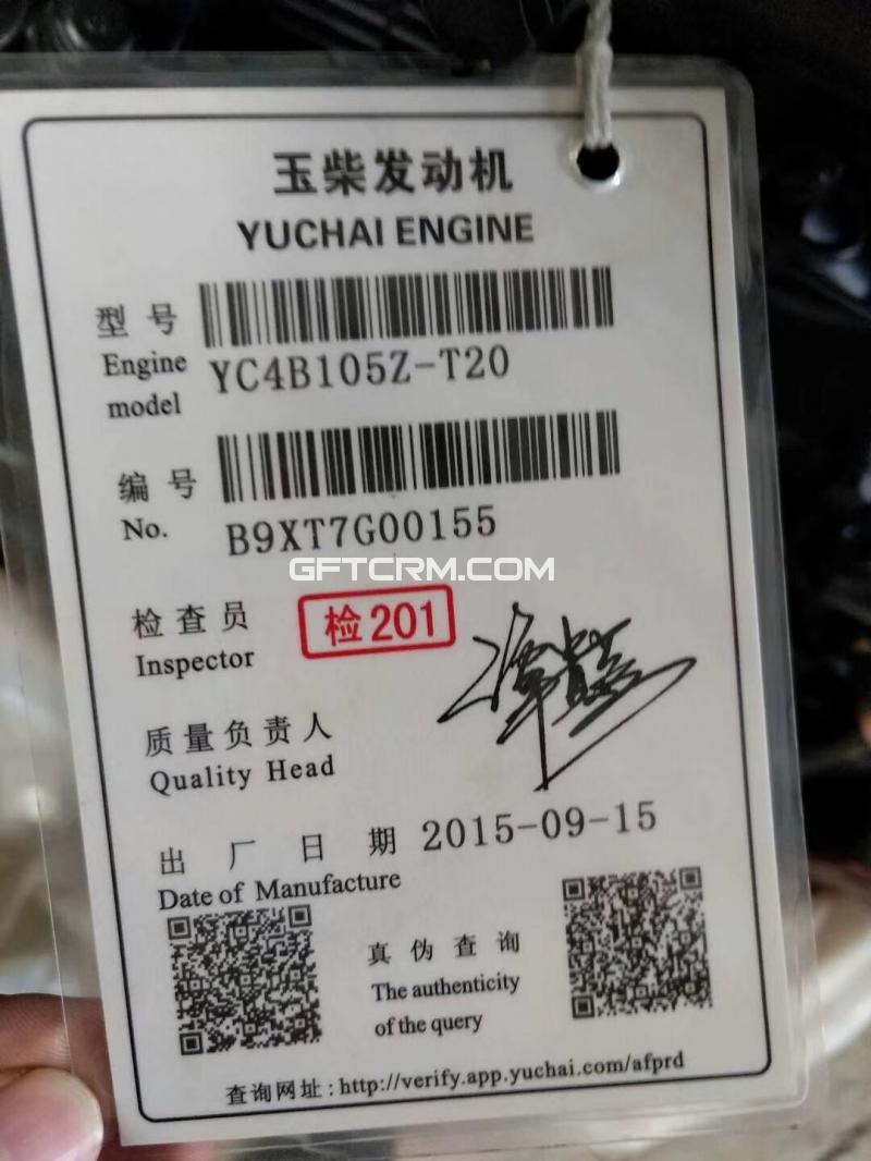 玉柴發(fā)動機總成 YC4B105Z-T20