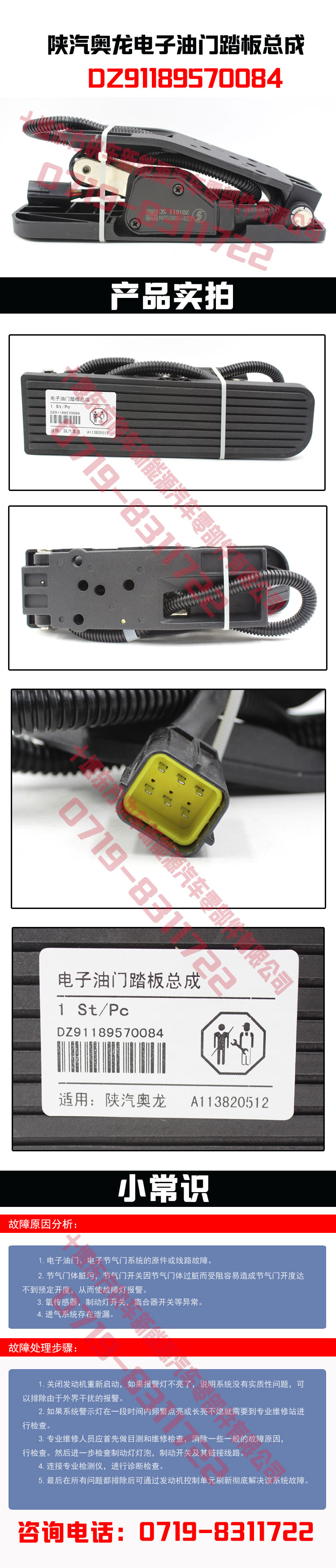 陜汽奧龍電子油門踏板總成 DZ91189570084